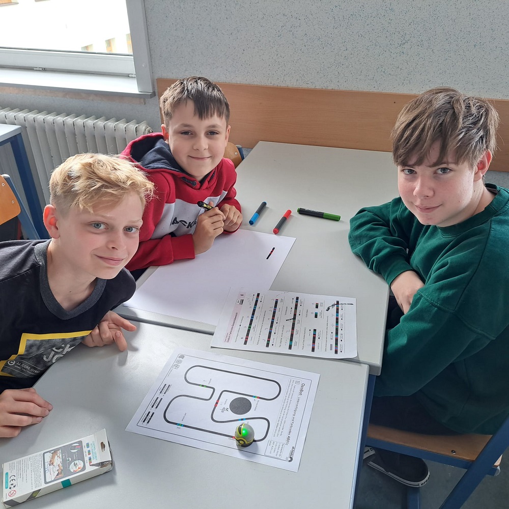 Ozobots sind kleine kinderfreundliche Roboter, die einer durch Farbcodes programmierten Bahn nachfahren können. Ähnlich funktionieren auch Lagerroboter in der Lagerlogistik (Post, Versandhandel, Apotheken, …). Bei FL Elisabeth Neuhold und Gabriele Ernst durften die Kinder der 1. Klassen ihre ersten Schritte im Programmieren machen und waren begeistert.