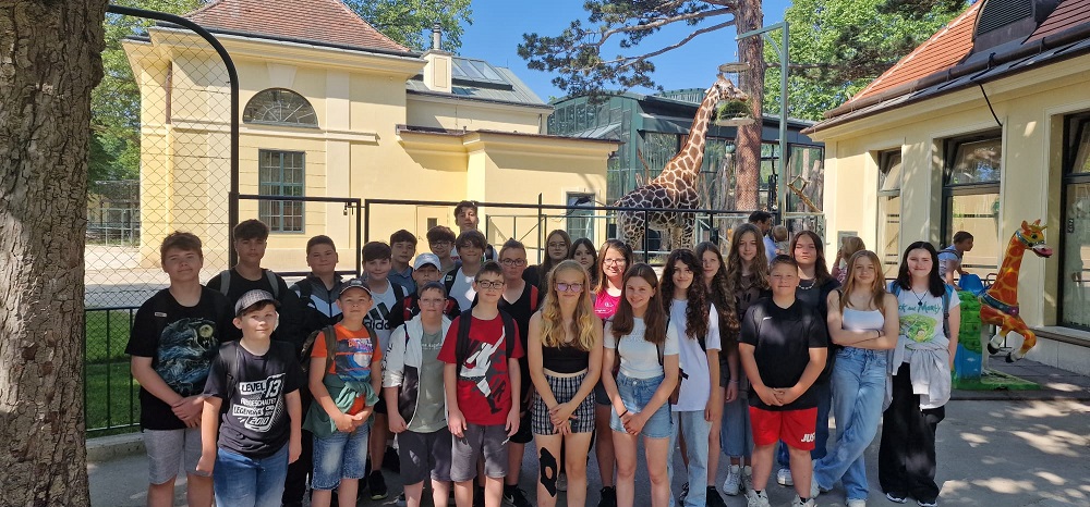 Ein äußerst bunte und abwechslungsreiche Wien-Woche verbrachten die 3. Klassen der NMS Lanzenkirchen mit ihren KVs Daniela Michlfeit, Anja Rodler sowie FL Claudia Metz. Am ersten Tag stand der Tierpark Schönbrunn am Programm, ehe es am Dienstag zu einem Graffiti-Workshop an den Donaukanal ging. Nach einem Schwimmtag am Mittwoch im Seebenstein pendelte die Gruppe am Donnerstag wieder nach Wien, um bei einer Rätselrallye die Wiener Innenstadt unsicher zu machen. Die Fotocollagen wurden von den Kindern selbst gestaltet und waren ein Teil der Arbeitsaufträge.