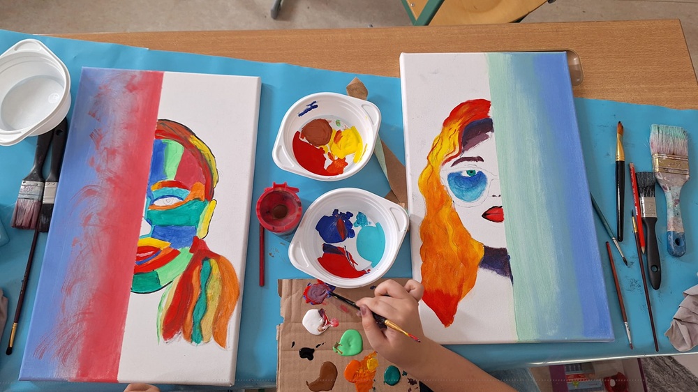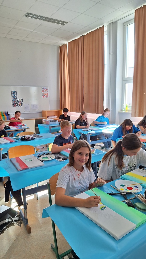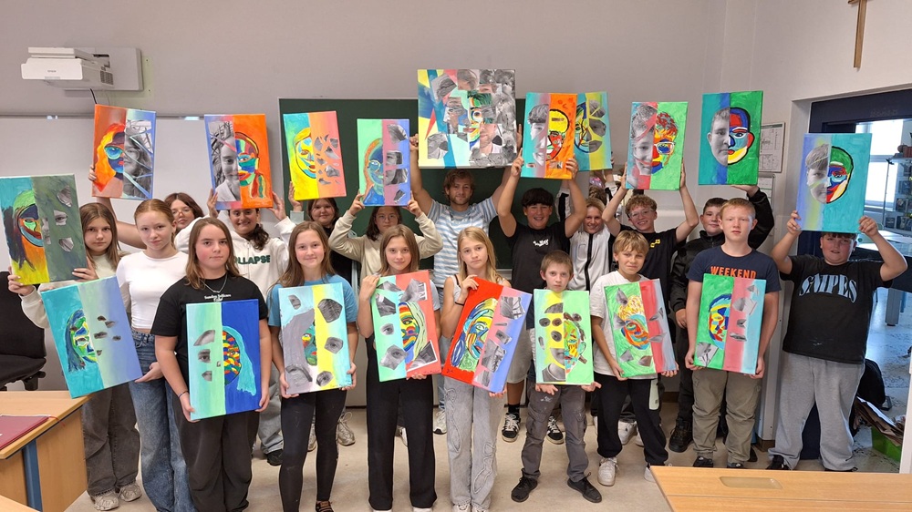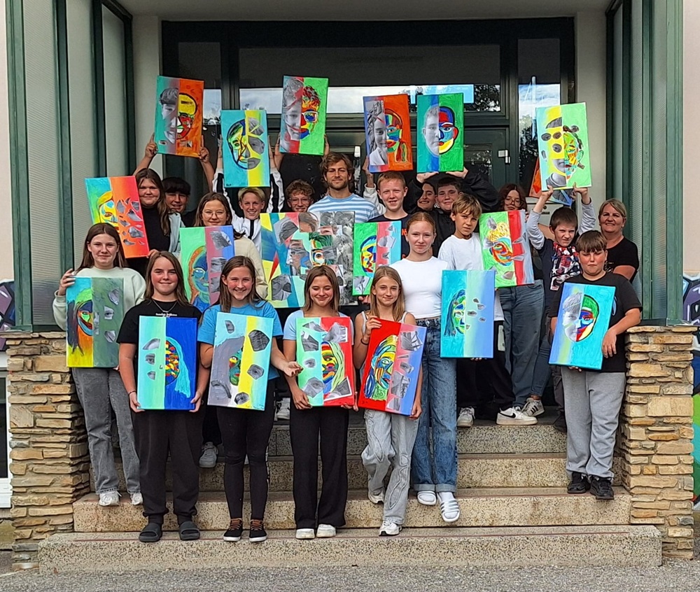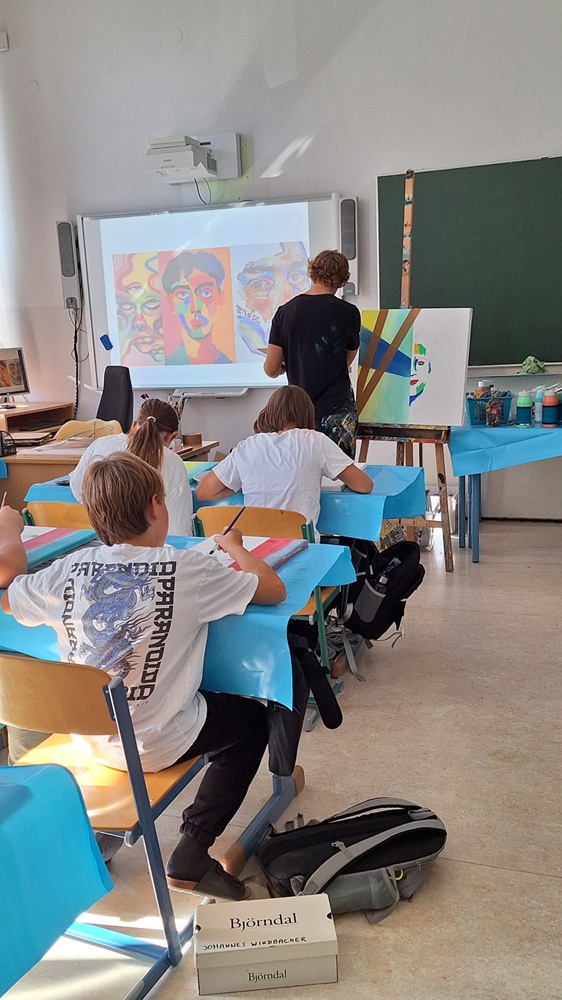 Der Katzelsdorfer Künstler und Lehramtsstudent Max Flatischler war am Mittwoch im KGE-Unterricht der 3b-Klasse und KV Claudia Hanakampf zu Gast, um mit den Schülern und Schülerinnen gemeinsam Portraits zu gestalten. Gefragt war ein kreativer Umgang mit Selbstportraits und dem Mut zur Verfremdung, sowie die Auseinandersetzung mit der Symbolkraft von Farben und Fragmenten. Die tollen Ergebnisse der Kinder konnten sich am Ende des Workshops sehen lassen!