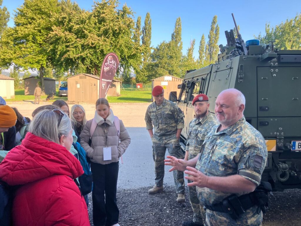 Am Freitag, dem 3. Oktober, besuchte die 4ab gemeinsam mit den Lehrkräften FL Schadl, FL Glantschnig und FL Dorfmeister die Dabsch-Kaserne in Korneuburg. Anlass war der „Tag der Schulen“ im ABC-Abwehrzentrum, bei dem zahlreiche abwechslungsreiche Stationen auf die NMS Lanzenkirchen warteten. Besonders beeindruckend waren die umfangreiche Waffen- und Geräteschau sowie die Mitmachstationen, an denen die Schülerinnen und Schüler selbst aktiv werden konnten. Auch der Besuch im Luftschutzbunker bot spannende Einblicke, und moderne Ausrüstungsgegenstände wie Nachtsichtgeräte konnten aus nächster Nähe begutachtet werden. Darüber hinaus erhielten die Teilnehmerinnen und Teilnehmer in einem interessanten Vortrag Einblicke in die Labortätigkeiten vor Ort und warfen einen Blick auf den vielseitigen Fuhrpark des Bundesheeres. Für Fragen rund um Karrierechancen im Bundesheer standen Soldatinnen und Soldaten zur Verfügung – und auch für das leibliche Wohl war bestens gesorgt. Die Schülerinnen und Schüler nahmen viele neue Eindrücke mit – bei einigen Burschen wuchs dabei bereits die Vorfreude auf den eigenen Grundwehrdienst. Alles in allem war es ein gelungener und lehrreicher Vormittag für die 4ab!