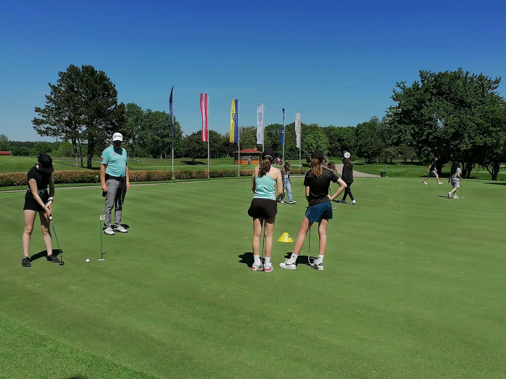 Als Laie denkt man zuerst an Vögel, für eine(n) Golfer*in sind das wichtige Grundbegriffe für das Zählen der Schläge. Und viel weiter in den Golfsport eintauchen durften in den letzten Tagen die Kinder der 3. Klassen, die ein Schnuppertraining im nahe gelegenen GC Föhrenwald absolvierten. Aufgewärmt durch die Anreise per pedes oder mit dem Rad brachten ihnen die Trainer die Grundlagen im Schnellverfahren bei. Der richtige Stand, die richtige Haltung der Schläger und viele weitere Tipps wurden mit Begeisterung aufgenommen, ehe die Kinder auf der Driving Range oder am Putting Green üben durften. Über ein „Nachsitzen“ hätten sich die Kinder der NMS Lanzenkirchen an diesen Tagen gefreut, so groß war die Begeisterung. Ein großes Dankeschön geht an Markus Habeler und dem Trainerteam des GC Föhrenwald, die unseren Schüler*innen dieses tolle Erlebnis ermöglichten. Wir kommen wieder!