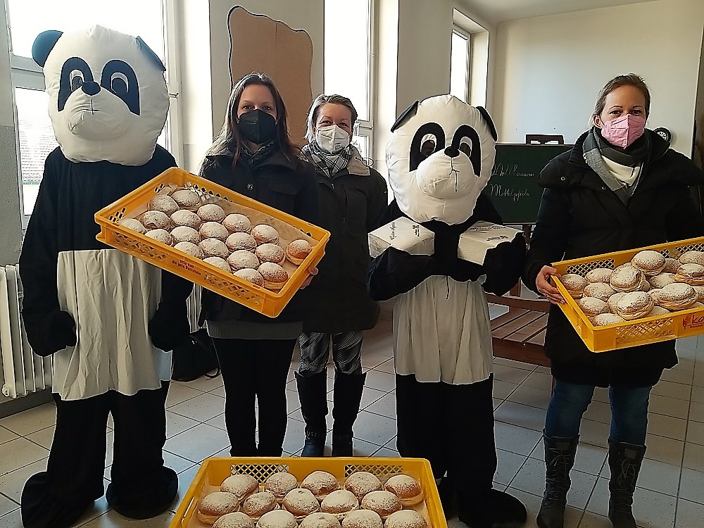 Was ist ein Faschingsdienstag ohne einen flaumigen Krapfen. Vor allem in einer Schule, wo eine Horde verkleideter Kinder zwischen dem anstrengenden Unterricht eine süße Stärkung braucht. Dies dachten sich auch die Bäckerei Koll, die RAIKA Lanzenkirchen und der Elternverein der Schulgemeinde Lanzenkirchen, die sämtliche hungrige Leckermäuler der NMS Lanzenkirchen mit einer herrlichen Krapfen beschenkte. Wir wünschen einen frohen Faschingsdienstag und sagen Danke!