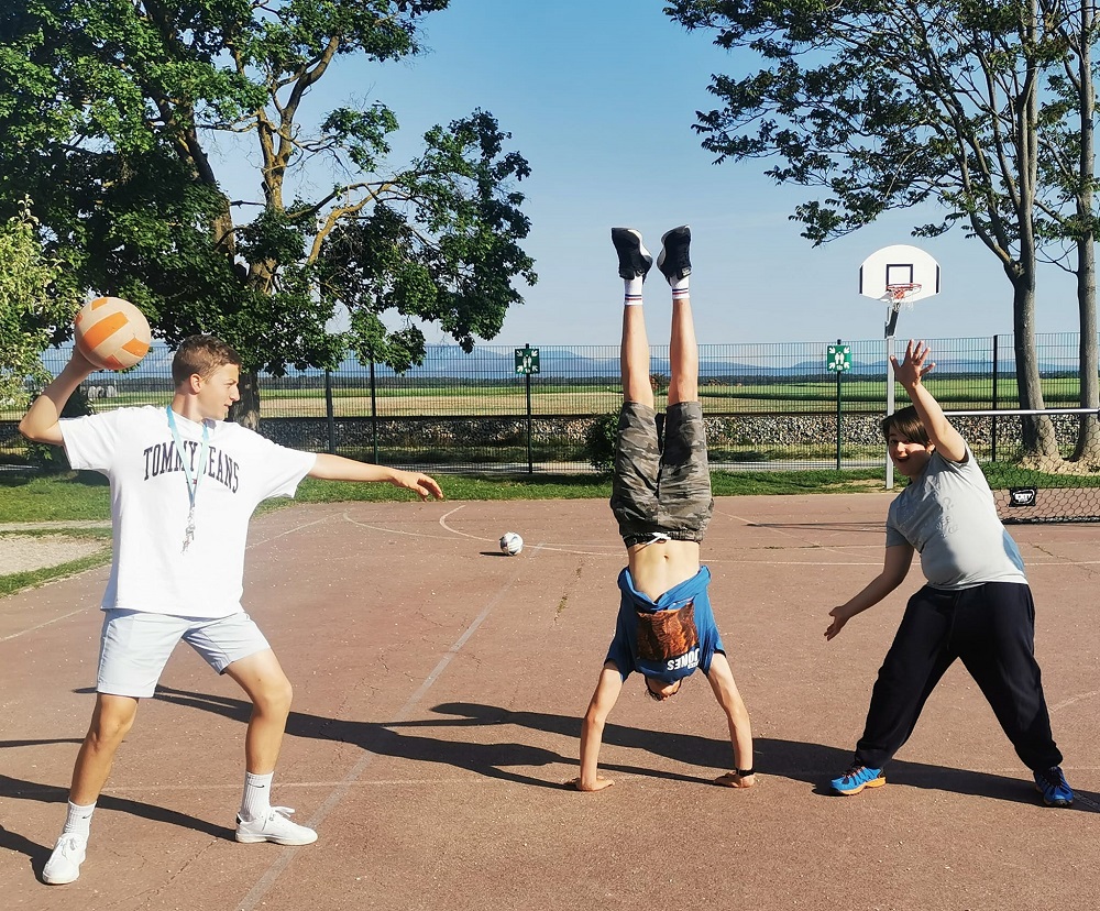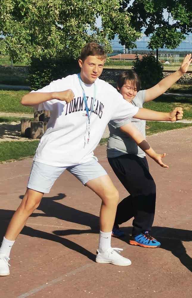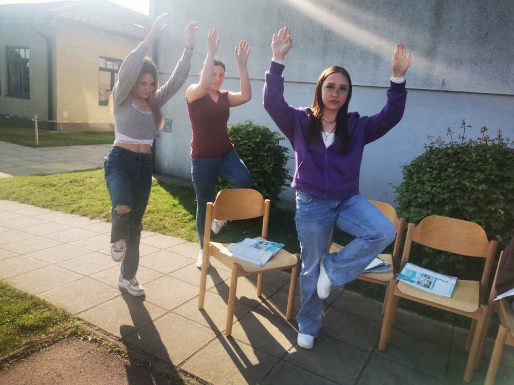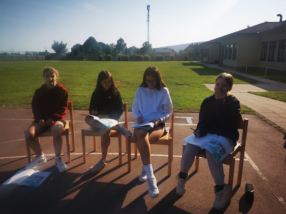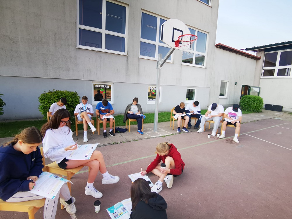In der AHS-Gruppe der 4. Klassen gab es bei FL Eveline Schadl einen abwechslungsreichen Deutschunterricht im Freien. Zwischen dem Rechtschreib-Training durften die Kinder Yogaübungen machen, Frisbees werfen oder mit Bällen spielen.