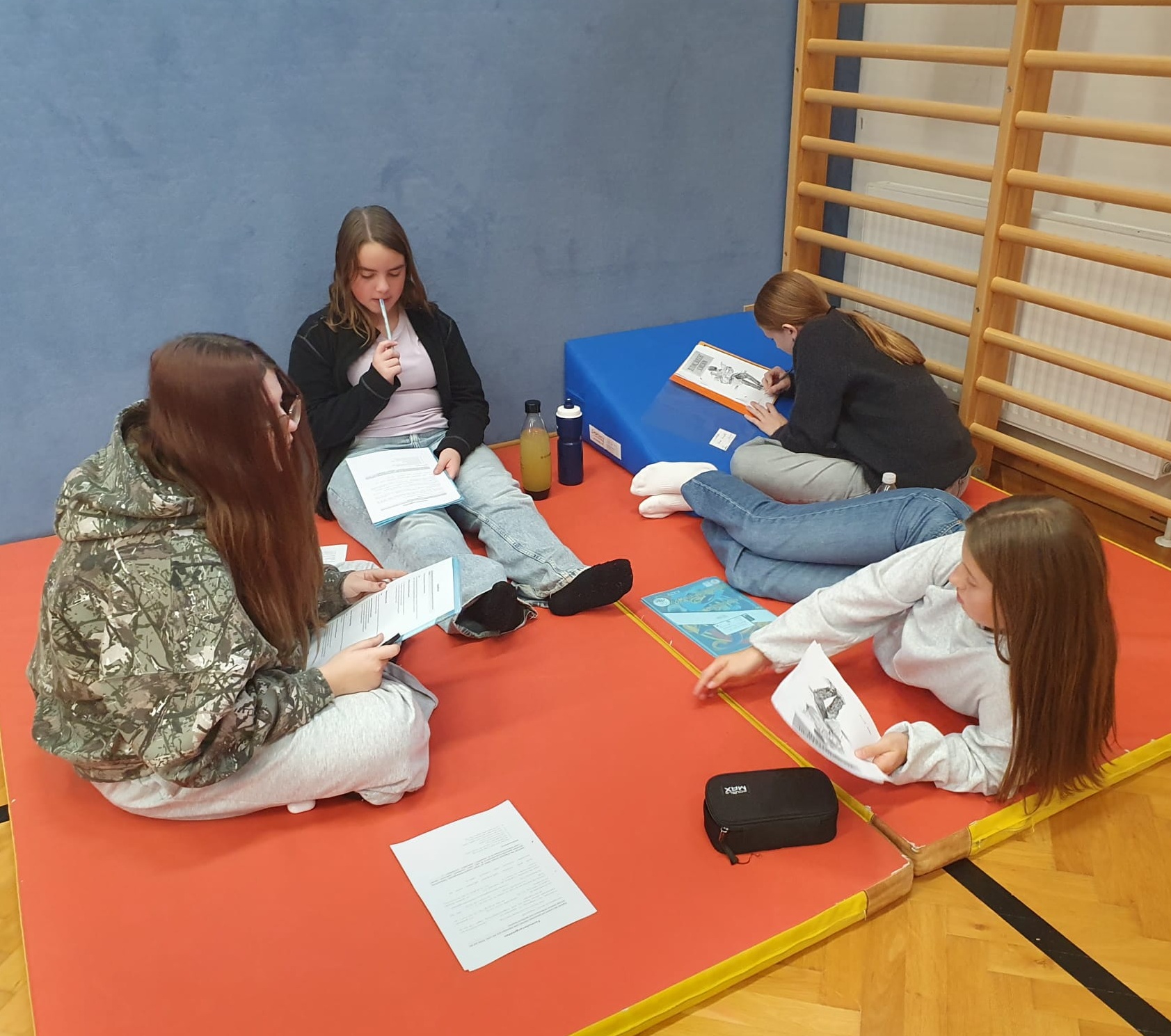 Wer freut sich sonst auf eine Doppelstunde Deutsch? Unsere Schülerinnen schon, denn der Unterricht in der Turnhalle ist alles andere als gewöhnlich. Gemütliche Matten werden ausgebreitet, es entsteht eine entspannte Lernatmosphäre, in der selbstständiges Arbeiten, Bewegung und gegenseitige Unterstützung im Mittelpunkt stehen. Dabei entsteht oft mehr Ruhe als im Klassenzimmer. Wer eine Pause braucht, kann sie sich nehmen. Wer Hilfe braucht, weiß, an wen er sich wenden kann. So entwickeln die Schülerinnen ein Gespür für ihr eigenes Lernen, übernehmen Verantwortung und erleben Deutschunterricht ganz neu: lebendig, selbstbestimmt und mit Freude.