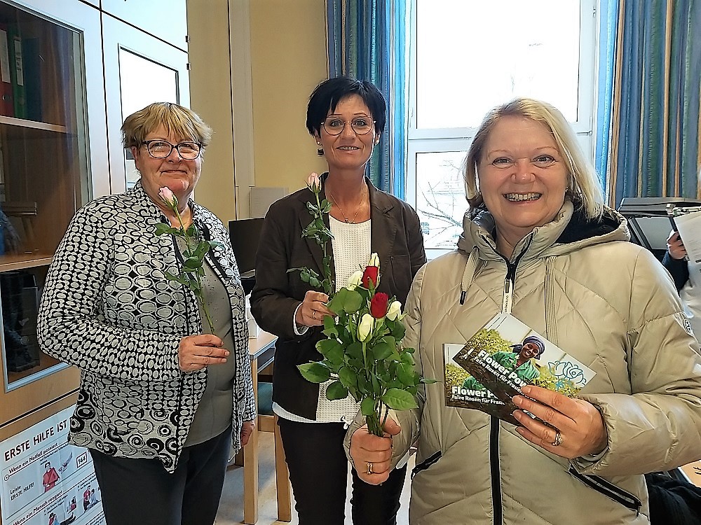 Jedes Jahr am 8. März demonstrieren seit mehr als hundert Jahren Frauen für ihr Recht auf faire Löhne und sichere Arbeitsplätze. Vizebürgermeisterin Heide Lamberg überbrachte in der Früh jeder Pädagogin der NMS Lanzenkirchen als farbenfrohes Zeichen der Gleichberechtigung eine fair gehandelte Rose.