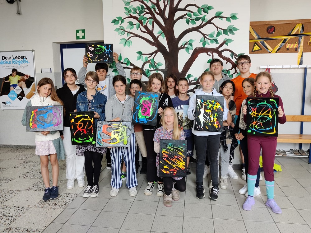 Richtig bunt wurde es in der NMS Lanzenkirchen beim letzten Termin der Kreativwerkstatt mit FL Daniela Michlfeit. Mit Spraydosen und schwarzer Farbe wurde diese kontraststarken Bilder gefertigt, auf die ausnahmslos alle Teilnehmer*innen stolz waren.