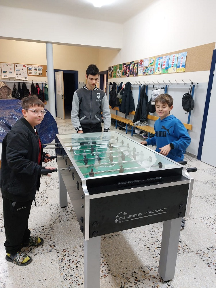 Während im Schulhof Basketball, Fußball und Volleyball schon seit mehreren Wochen in der großen Pause am Programm steht, ist seit wenigen Tagen auch in der Schule für kurzweilige Pausen gesorgt. Neben Tischtennis haben die Kinder nun auch die Möglichkeit ihre Fertigkeiten beim Tischfußball zu verfeinern.