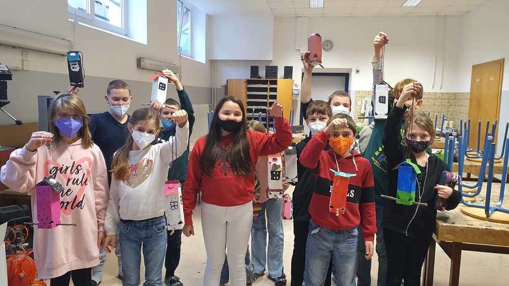 An diesen kunterbunten Futterhäuschen wird sicher kein Vogel vorbeifliegen. Gemeinsam mit FL Susanne Glantschnig fertigte die 1a-Klasse im Technischen Werkunterricht Vogelhäuschen an. Prall befüllt mit Sonnenblumenkernen stehen sie ab sofort als Futterstelle für die heimische Vogelwelt bereit.