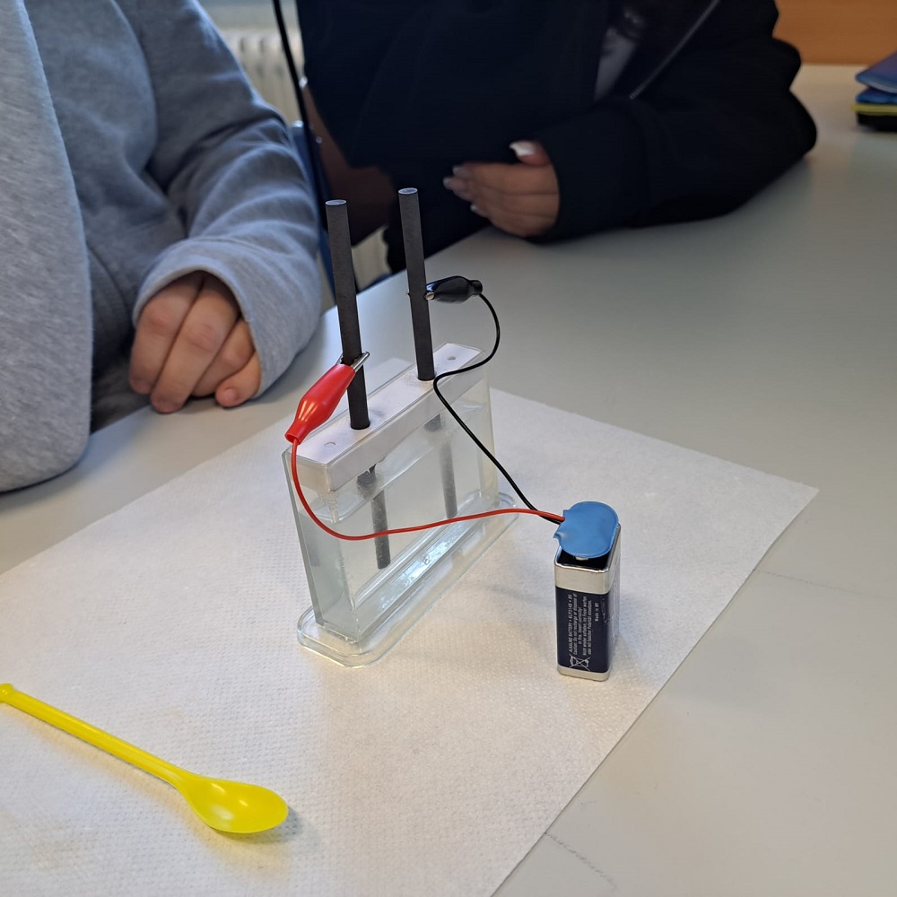 Unter Elektrolyse (griech. „mittels Elektrizität trennen“) versteht man die Aufspaltung einer chemischen Verbindung unter Einwirkung des elektrischen Stroms. Wie das aber in der Praxis funktioniert, durften die 4. Klassen bei FL Elisabeth Neuhold im Chemie-Unterricht selbst ausprobieren. Und plötzlich wird ein chemischen Verfahren anschaulich und leicht verständlich.