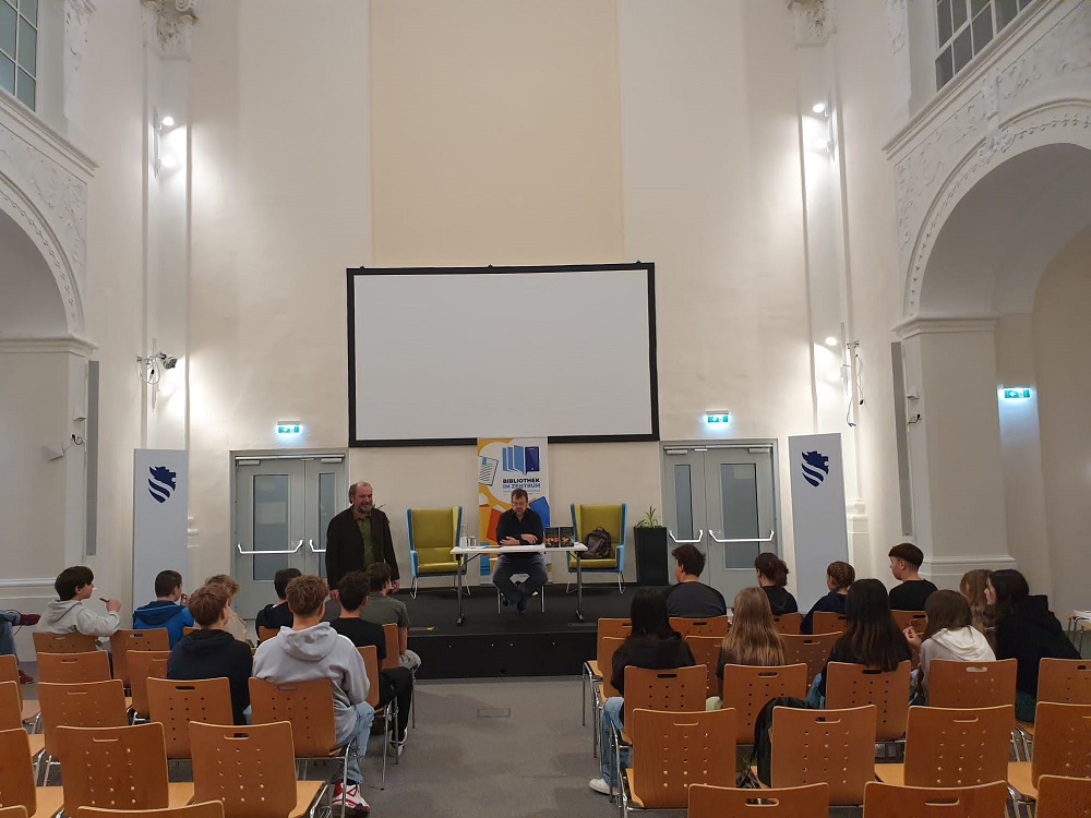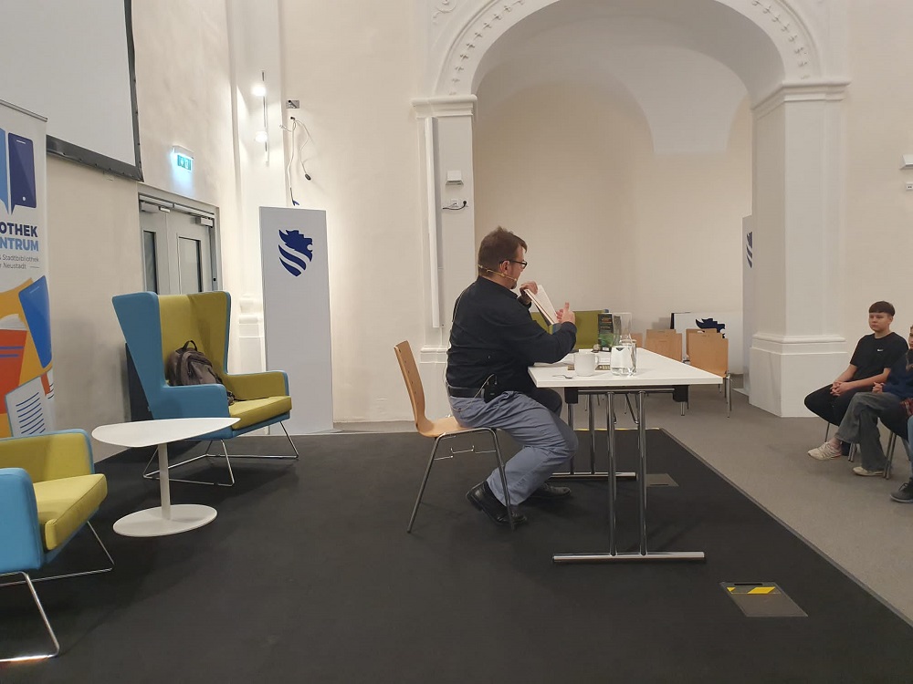 Im Rahmen des Literaturfestival 2024 besuchte FL Marina Strebinger mit ihrer Deutsch-Gruppe aus den 4. Klassen die Bibliothek im Zentrum in Wiener Neustadt. Höhepunkt war neben dem stundenlagen Schmökern in der Bibliothek, die Lesung des preisgekrönten Bestseller-Autors Andreas Gruber. Nicht aus seinen bekannten Thrillern (Todesfrist, Todesurteil, Todesmärchen, …), sonder aus seinem neuen Jugendbuch „Last Line auf Defence“ präsentierte er Leseproben. Zusätzlich stand er den Kinder Rede und Antwort in zahlreichen Fragen über das Leben und Arbeiten eines Autors sowie die Entstehung eines Buches.