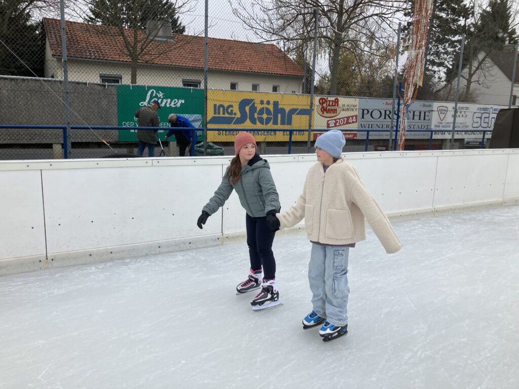 Die ersten Eislaufversuche dieser Wintersaison fanden in Wiener Neustadt unter eisigen Bedingungen statt. Die ersten und zweiten Klassen nutzten die Gelegenheit wieder an ihren Techniken zu feilen und an der Stabilität auf den Kufen zu arbeiten. Neben kleineren unvermeidbaren Stürzen und unfreiwilligen Sitzlandungen waren zwischendurch auch akrobatische Pirouetten und Rittberger zu beobachten 😉