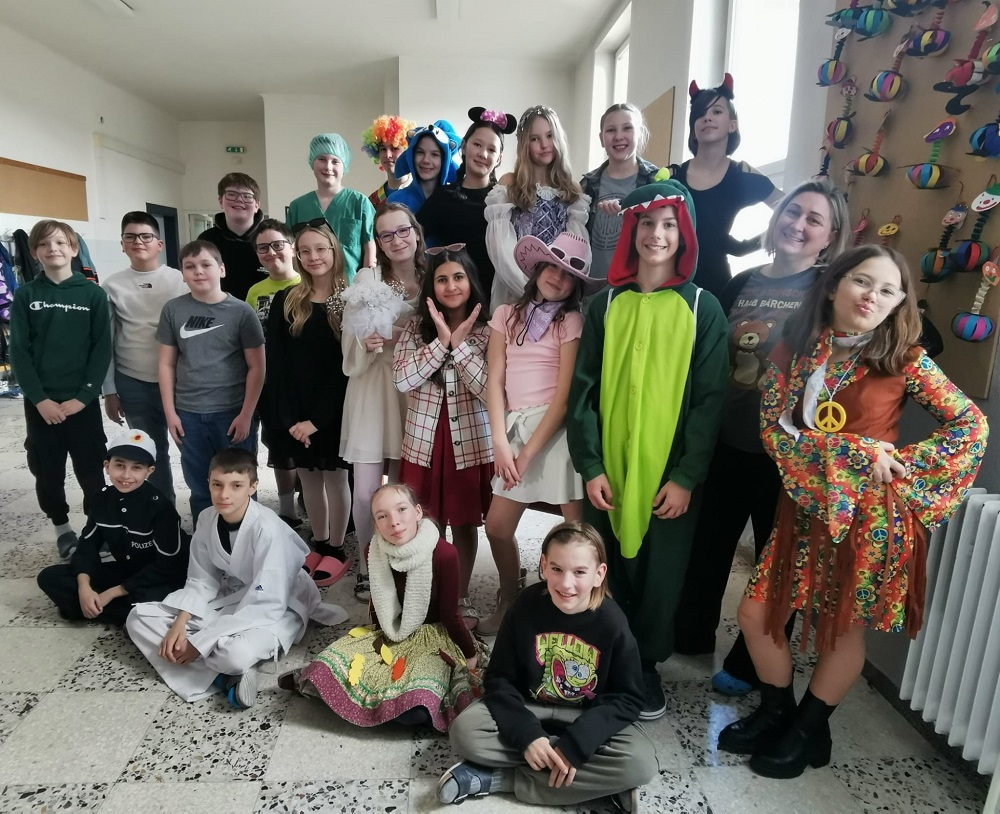 Die vierten Klassen verwandelten gemeinsam mit FL Anja Rodler und FL Daniela Michlfeit am Faschingsdienstag den Werksaal zu einer perfekten Kellerdisco. Sämtliche Klassen und Lehrer*innen statteten der Disco einen Besuch ab und tanzten zu aktuellen und zeitlosen Hits. Die Faschingskrapfen-Spende des Elternvereins sowie kleine Faschingsfeiern in den Klassen rundeten den unterhaltsamen Vormittag ab.