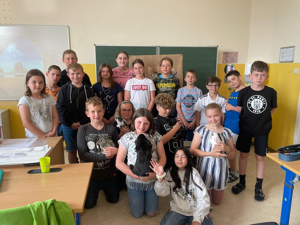 Im Zuge eines Biologie-Referates bei FL Magdalena Karner über Kaninchen, überraschte Vanessa Koger die 1a-Klasse mit dem Besuch ihrer Haustiere. Natürlich gab es für die flauschigen Wollknäul unzählige Streicheleinheiten.