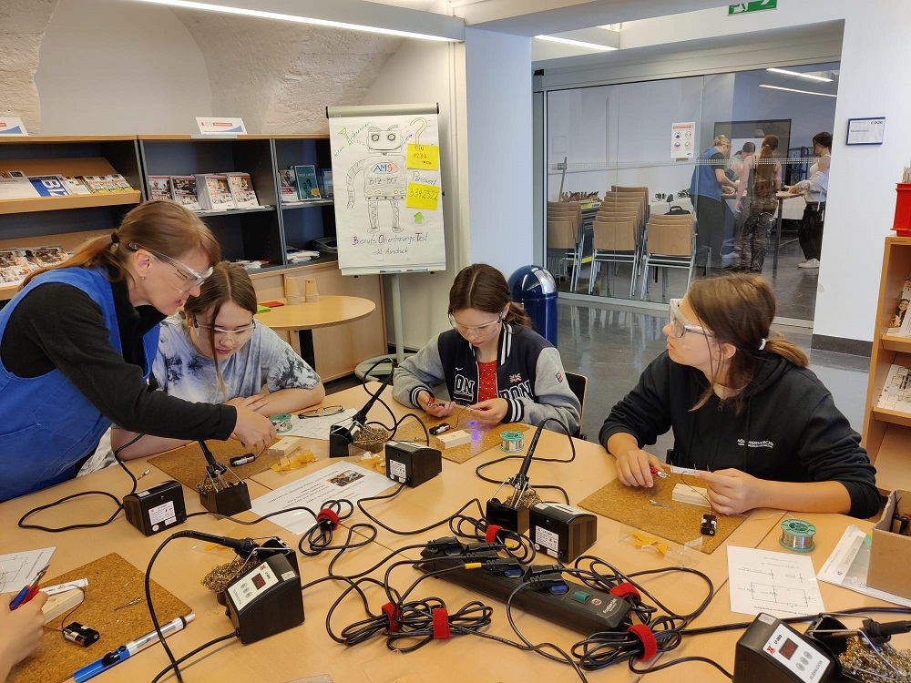 Beim traditionellen „Girls Day“ des AMS Wiener Neustadt waren wieder zahlreiche Mädels aus den 3. und 4. Klassen mit BO-Koordinatorin Daniela Michlfeit mit dabei. Bei zahlreichen Stationen wurde den Kinder viele unterschiedliche Handwerksberufe näher gebracht. Natürlich durften sie auch selbst Hand anlegen und mit vielen verschiedenen Werkstoffen arbeiten.