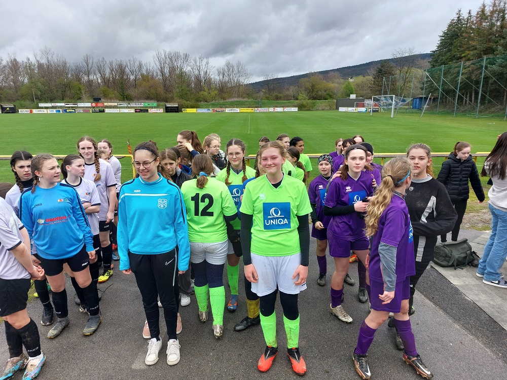 Trotz der massiven Regenfälle freuten sich die Auswahl der NMS Lanzenkirchen auf das Uniqua-Mädchenliga-Vorrundenturnier auf der heimischen Sportanlage. Sechs Schulen duellierten sich dabei um die begehrten Aufstiegsplätze in die nächste Runde. Unsere Mädels zeigten dabei tolle Leistungen und eine deutliche Steigerung zum letzten Jahr. Wenn ein Spiel verloren ging, dann zumeist nur mit einem Tor Unterschied. Am Ende sicherten sich die NMS Scheiblingkirchen, NMS Winzendorf und die NMS Kirchschlag die Tickets für das Viertelsturnier. In den Spielpausen feierten unsere Fußball-Neulinge aus den 1. Klassen ihr Debüt im Dress der NMS Lanzenkirchen. In vier kurzen Spielen gegen die NMS Kirchschlag ließen dabei einige Girls ihr Fußball-Talent aufblitzen. Ein Dank geht an Markus Schwendenwein und die Uniqua für das Sponsoring der Pokale und Medaillen. Schulausschussobmann und GGR Markus Kitzmüller-Schütz ließ es sich nicht nehmen, den Mädels für ihre Leistungen persönlich zu gratulieren.