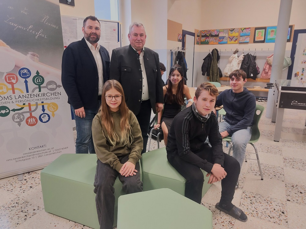 Pünktlich vor Weihnachten wurden die Schüler und Schülerinnen der NMS Lanzenkirchen mit einer großen Möbellieferung überrascht. Nach vielen Jahren haben die alten Sitzgruppen in den Gängen ausgedient und neue, mobil einsetzbare Tische, Sessel und Sitzwürfel wurden angeschafft. Ein großes Dankeschön geht an die Mittelschulgemeinde für die Finanzierung der Möbel!
