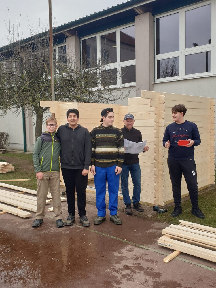 Nachdem die alte Sportgerätehütte einem Vandalenakt im Herbst zum Opfer fiel, musste eine massivere Ausführung her. Gemeinsam mit Schulwart Peter Ilias und FL Manfred Bauer-Wolf baute die Werkgruppe der 4. Klassen an nur einem die Tag das neue Gerätehaus auf. Herzlichen Dank für eure Mithilfe, sie ist wirklich toll geworden!