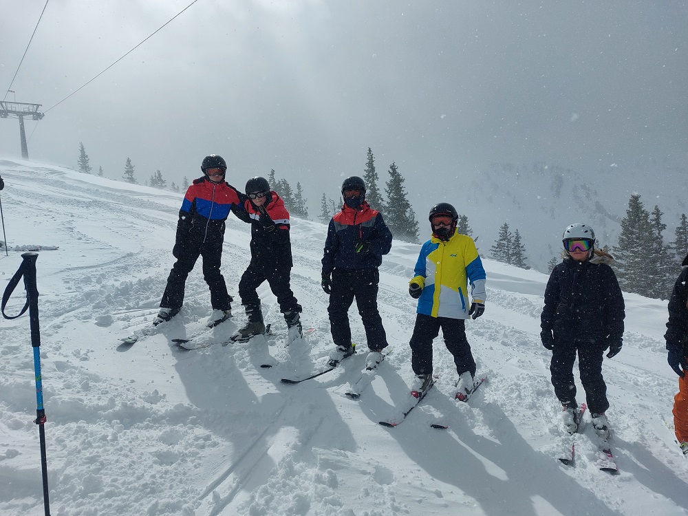 Nach einer schon deutlich ruhigeren Nacht in den Zimmern (vor dem Hotel wurden Böen mit über 100 km/h gemessen) und einem sanften Wecken durch die Lehrer, war der Hunger beim Frühstück schon größer. Wie immer wurde der Schitag überpünktlich begonnen, die Friedl-Gruppe konnte von den unberührten Tiefschneepisten in der Früh gar nicht genug bekommen. Aber auch im Tal wurde bei perfekten Bedingungen fleißig trainiert, die Anfänger mit Leitern Eva Parzer machten schon die ersten schönen Schwünge im dichten Schneetreiben. Die Schaffer-Gruppe wurde bei der ersten Fahrt vom Gipfel zur Oxnalm von dem vielen Schnee(treiben) überrascht, musste einen Zwischenstopp auf der Hütte einlegen und kam etwas verspätet zum Mittagessen, wo (überraschend) Schinkenfleckerl der Renner waren. Am Nachmittag wurden die Gruppen durcheinandergewürfelt. FL Schaffer übernahm die Gruppe 1, SL Friedl die „ich bin am Weg vom Pflugbogen zum Parallelschwung“-Gruppe und FL Parzer die Alternativgruppe, die eine tolle Schneeschuhtour absolvierte. Zum Abendessen wurde Putengeschnetzeltes in rauen Mengen verdrückt, der Kinoabend im Anschluss wurde dann, auf Wunsch der müden Kinder, sogar früher gestartet. Morgen erwarten uns nach 2 1/2 Tagen durchgehenden Schneefall deutlich bessere Bedingungen, weniger Wind und viel mehr Sonne … 🙂