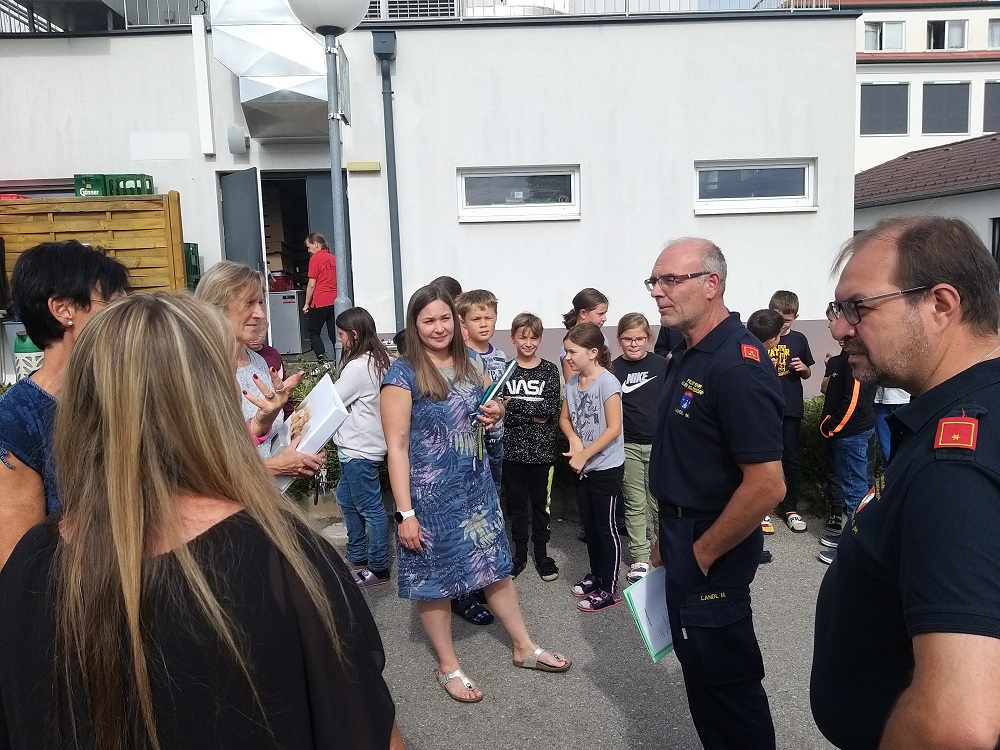 Mit der Stoppuhr in der Hand wurde kontrolliert und die Zeit war sehr ansprechend. Nur wenige Minuten benötigten die Kinder und Lehrer*innen der NMS für die Räumung des Schulgebäudes. Ebenfalls perfekt umgesetzt wurde das Verschließen der Fenster und Türen sowie die Mitnahme der Klassenbücher. Genauestens kontrolliert wurde die Räumungsübung dabei von HBI Manfred Landl und BI Georg Kratochvil.