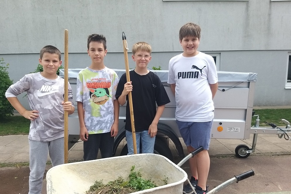 Wir Lehrer*innen und Schüler*innen verbringen sehr viel Zeit in der Schule, sprich im Gebäude und auch im Außenbereich. Somit ist es auch in unsere aller Interesse, in einem gepflegten Umfeld zu lernen, Sport zu treiben und zu arbeiten. Und die gemeinsame Pflege fördert auch den achtsamen Umgang mit der Einrichtung. Mit einigen Helfern war SL Martin Friedl am Dienstag über vier Stunden lang am Nachmittag im Schulhof beschäftigt, den Hartplatz zu säubern, die Sprunggrube aufzubereiten und viele Unkraut zu zupfen. Im Juni wird es einen zweiten arbeitsreichen Nachmittag geben, wo weitere Teile der Sportanlage gepflegt werden. Ein großer Dank geht an die Helfer, die nebenbei auch gleich den richtigen Umgang mit Schaufel, Rechen, Harke und Besen lernten.