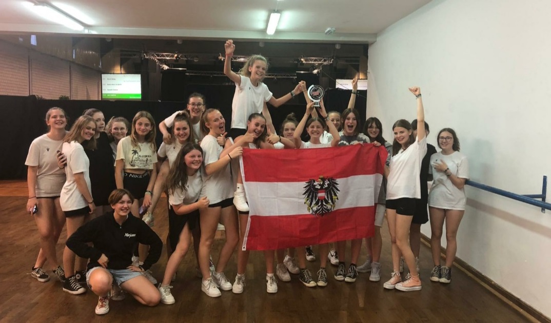 Mit zwei Silbermedaillen kamen Katharina Baumgartner (8.v.r) und Leonie Rodler (4.v.r) aus der 3a-Klasse von der Tanz-WM in Porec/Kroatien nach Hause. Gemeinsam mit der Großgruppe „Pink Elephants“ aus der Tanzschule „seven2eight“ sicherten sie sich in zwei Bewerben den sensationellen Vize-Weltmeistertitel. Die NMS Lanzenkirchen gratuliert recht herzlich!