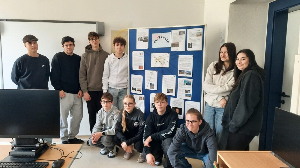 Stolz präsentierte diese Woche die 4ab-Englisch-Gruppe ihre Portfolio-Arbeiten über australische Städte, die Kultur und einzigartige Tierwelt. FL Gabriele Ernst zeigte sich begeistert von den interessanten Artikeln und der liebevoll gestalteten Tafel.