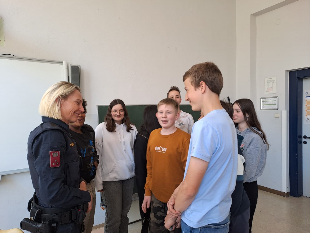 Im Rahmen der Workshop-Reihe „All Right – Alles was Recht ist!“ fand an Donnerstag der zweite Teil für die 4. Klassen der NMS Lanzenkirchen statt. Gruppeninspektorin Sonja Hofer stand dabei allen Kindern Rede und Antwort, stellte ihren Beruf als Polizistin vor und rückte vor allem das Rechtsbewusstsein der heutigen Jugend in den Mittelpunkt. Für die Schüler*innen der 4a und 4b war es eine unheimlich wertvolle Erfahrung, Informationen und Antworten aus erster Hand zu bekommen. Herzlichen Dank für die spannenden Stunden!