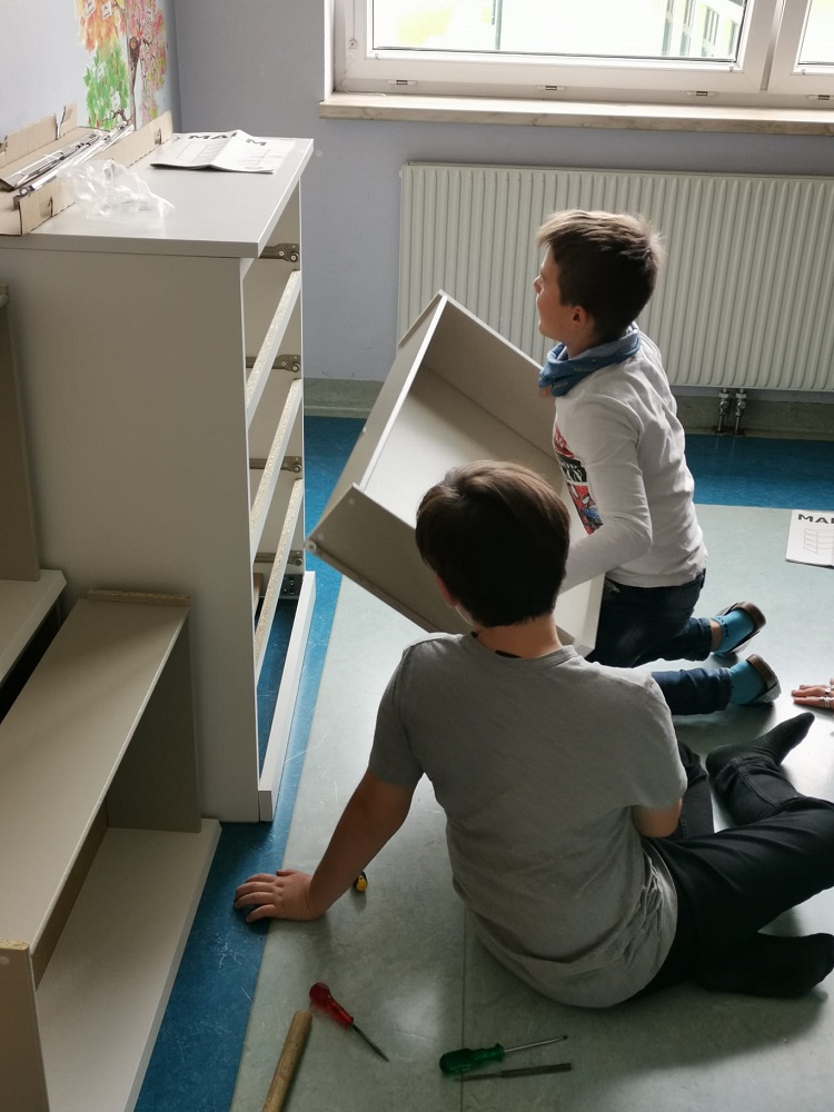 Im sozialen Lernen stand in der 3b-Klasse bei FL Anja Rodler der gemeinsame Bau einer Kommode auf dem Programm. Im Schichtbetrieb übergaben Kleingruppen einander die Arbeit, ein Gastschüler aus der 3a war auch mit dabei. Am Ende klappte alles wie am Schnürchen, einzig bei der Vorgehensweise und Interpretation der Bauanleitung war man nicht immer einer Meinung. Aber auch das muss gelernt werden!