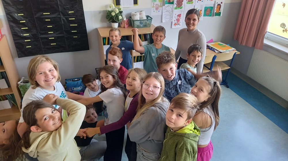 Unterhaltsame und spannende Stunden verbrachten die 1b-Klasse und KV Bettina Rammel mit Schulsozialarbeiterin Katja Lang, die einen Teambuilding-Workshop abhielt. Schwerpunkte dabei waren das Kennenlernen, Klassenklima, Vertrauen und die Kommunikation.