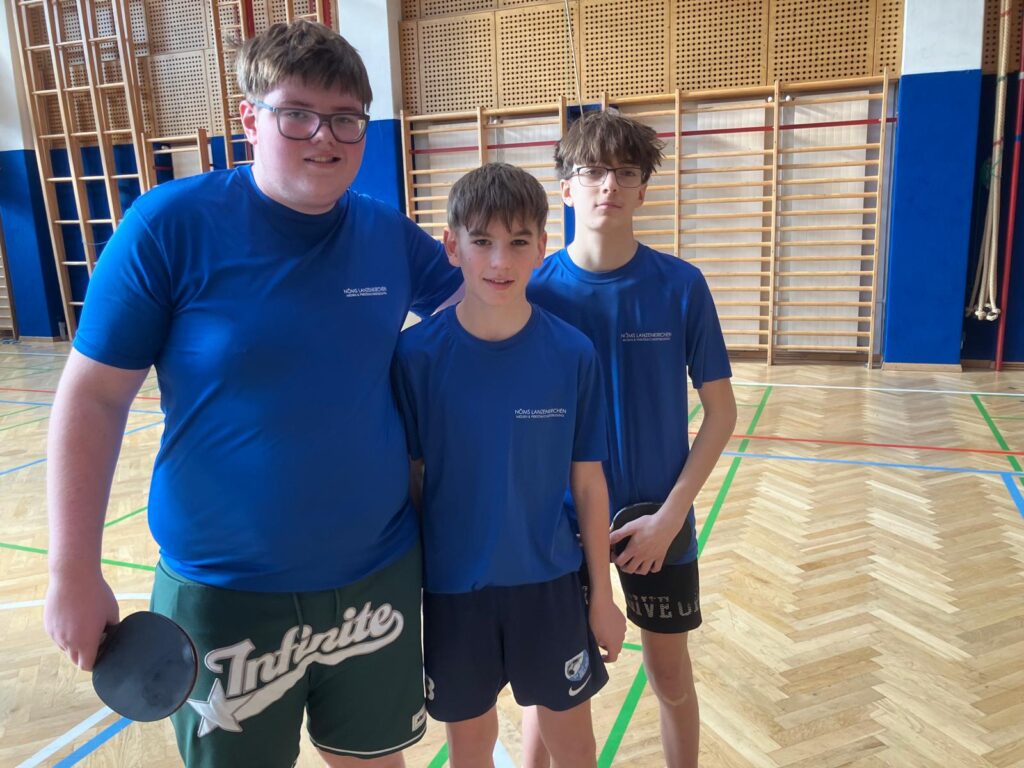 Die Burschen-Teams der NMS Lanzenkirchen zeigten sich beim Vorrundenturnier in der Sportmittelschule am Anemonensee in Wiener Neustadt von ihrer besten Seite. Insgesamt neun Mannschaften kämpften um den begehrten Platz im Landesfinale, das am 24. Februar in Oberndorf an der Melk ausgetragen wird. Unsere drei Mannschaften zeigten während des gesamten Turniers starke Vorstellungen und konnten sich allesamt im Spitzenfeld klassieren. Team 1 sicherte sich, nachdem man im Vorjahr noch im Finale knapp gescheitert war, mit einem 5:3-Finalsieg gegen die Bilingual Junior High School WN 1 verdient den 1. Platz und damit das Ticket für das Landesfinale! Auch Team 2 bewies große Kämpfermentalität und erreichte nach einem spannenden Entscheidungsspiel, das im letzten Einzel für uns entschieden wurde, einen starken 3. Platz. Team 3 komplettierte mit einem 5. Rang das hervorragende Gesamtergebnis. Bereits in der Gruppenphase deuteten sich die Erfolge an: beide Lanzenkirchner Teams (Lanz 1 und Lanz 2) beendeten ihre Gruppen ungeschlagen als Sieger.