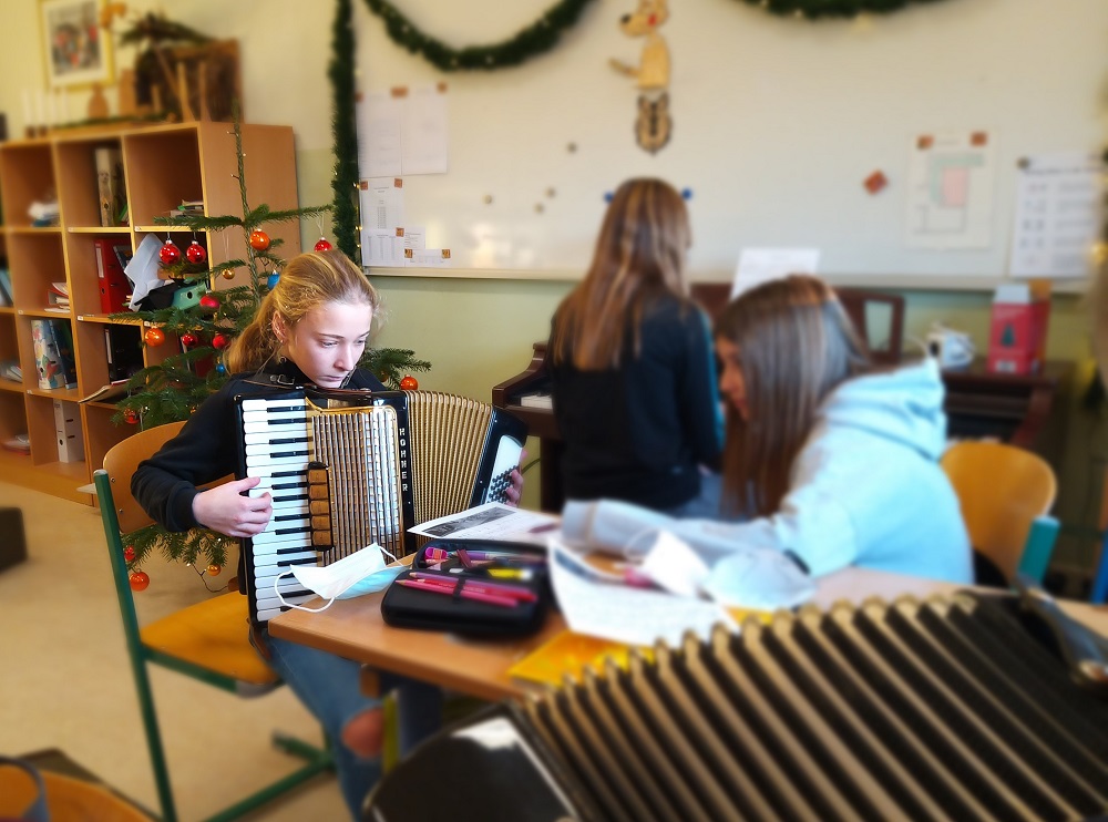 Traditionell vor Weihnachten setzt sich FL Manfred Bauer-Wolf mit einer kleinen Runde musikbegeisteter Schüler*innen aus seiner 3a-Klasse zusammen, um ein Stück einzustudieren. In dieser Runde aus lauter Autodidakten, die nie eine Muskschule besucht haben, darf man nicht immer genau hinhören. Frei nach dem Motto „aus kleinen Fehlern lernt man“ wünschen wir Frohe Weihnachten!