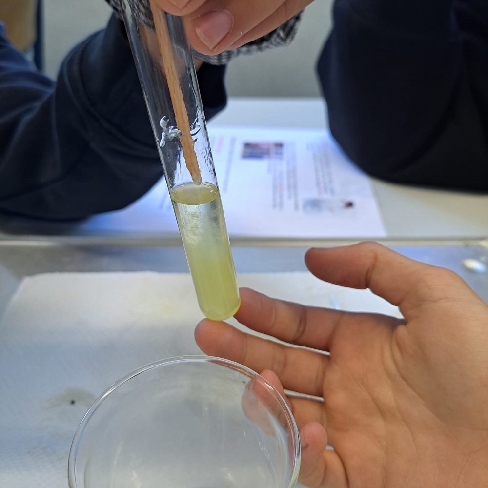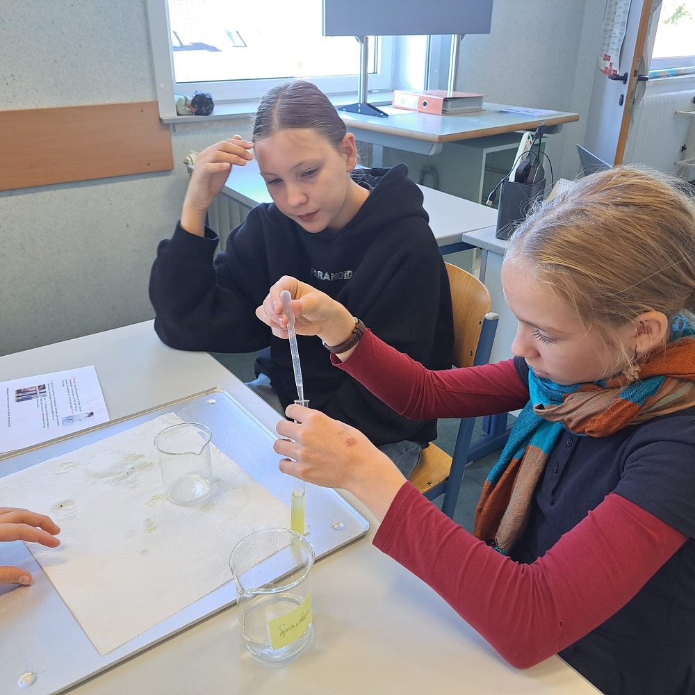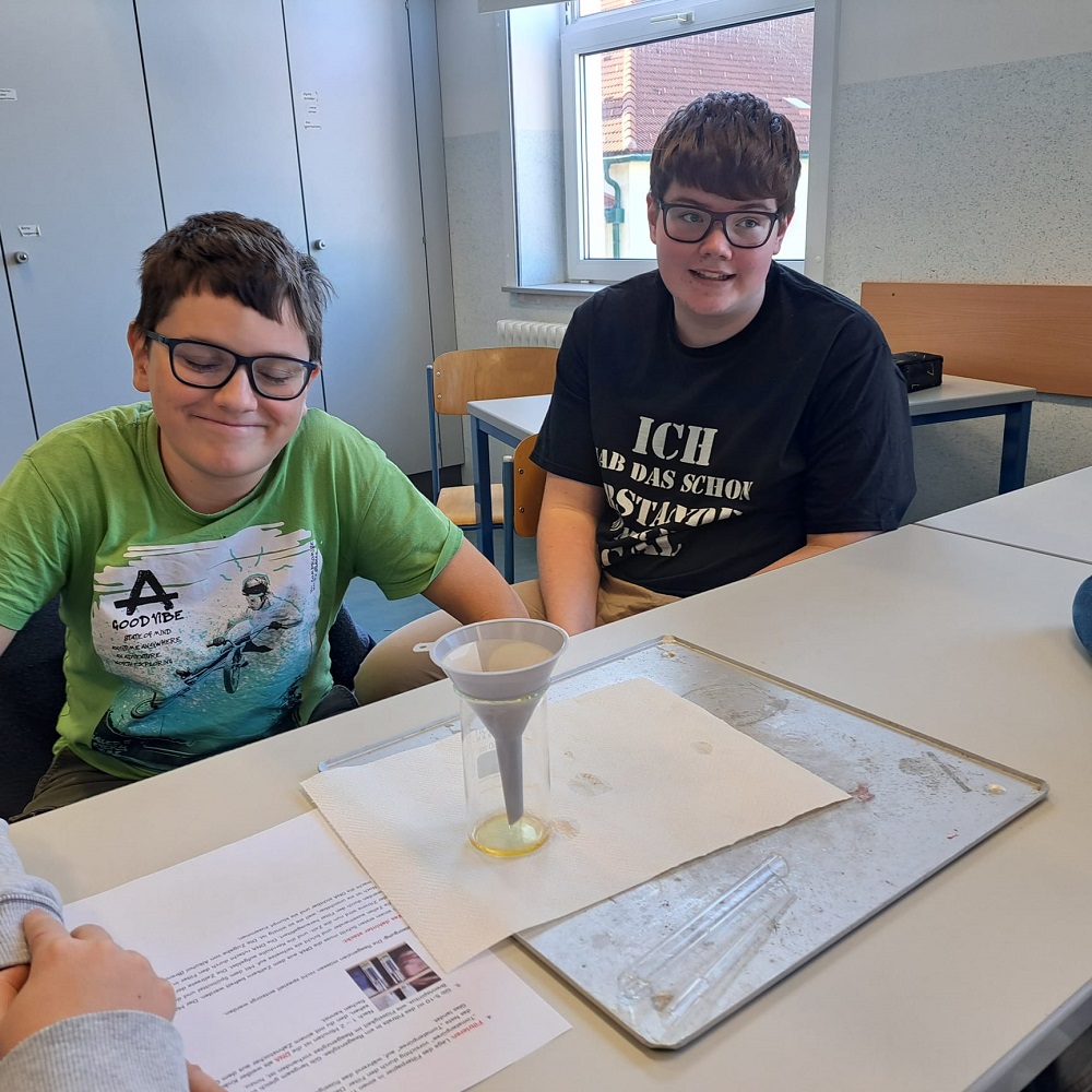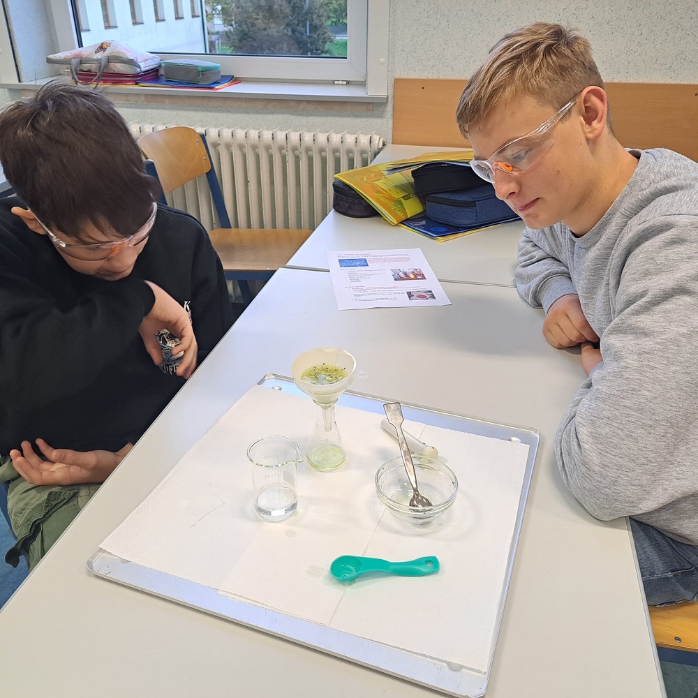 Spannende Experimente standen im Chemieunterricht bei FL Elisabeth Neuhold am Programm. Die 3a- und 3a-Klasse durften die DNA einer Kiwi und einer Tomate isolieren, um Trennverfahren kennenzulernen. Dabei wurde ein Extraktionspuffer hergestellt, extrahiert und dann filtriert. So spannend kann Chemie sein!