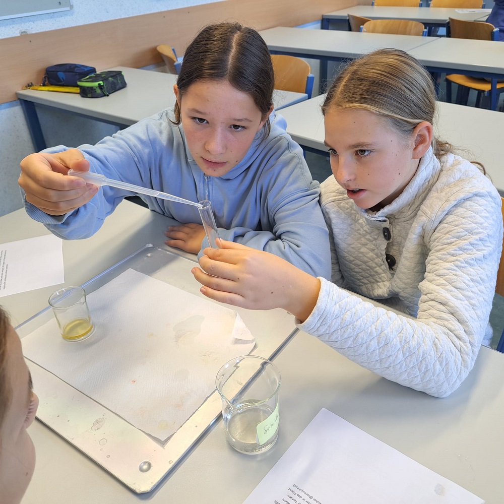 Spannende Experimente standen im Chemieunterricht bei FL Elisabeth Neuhold am Programm. Die 3a- und 3a-Klasse durften die DNA einer Kiwi und einer Tomate isolieren, um Trennverfahren kennenzulernen. Dabei wurde ein Extraktionspuffer hergestellt, extrahiert und dann filtriert. So spannend kann Chemie sein!