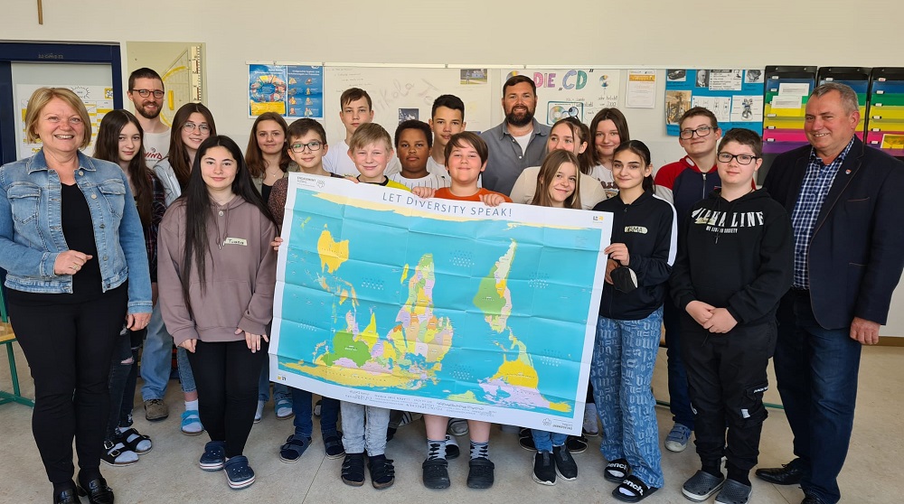 In dieser Woche war MA Andreas Müller vom Verein Südwind in der NMS Lanzenkirchen zu Gast, um im Rahmen der „fairen Wochen“ einen Workshop zum Thema „Menschrechte & Migration“ abzuhalten. Die Kinder der 3. Klassen wurden umfassend über Themen wie weltweite Migrationsbewegungen und Menschrechtsverletzungen sowie Asyl und Fluchtgründe informiert. Davon machten sich auch Bürgermeister Bernhard Karnthaler und Vizebürgermeisterin Heide Lamberg ein Bild, die der 3b-Klassen einen kurzen Besuch abstatteten.
